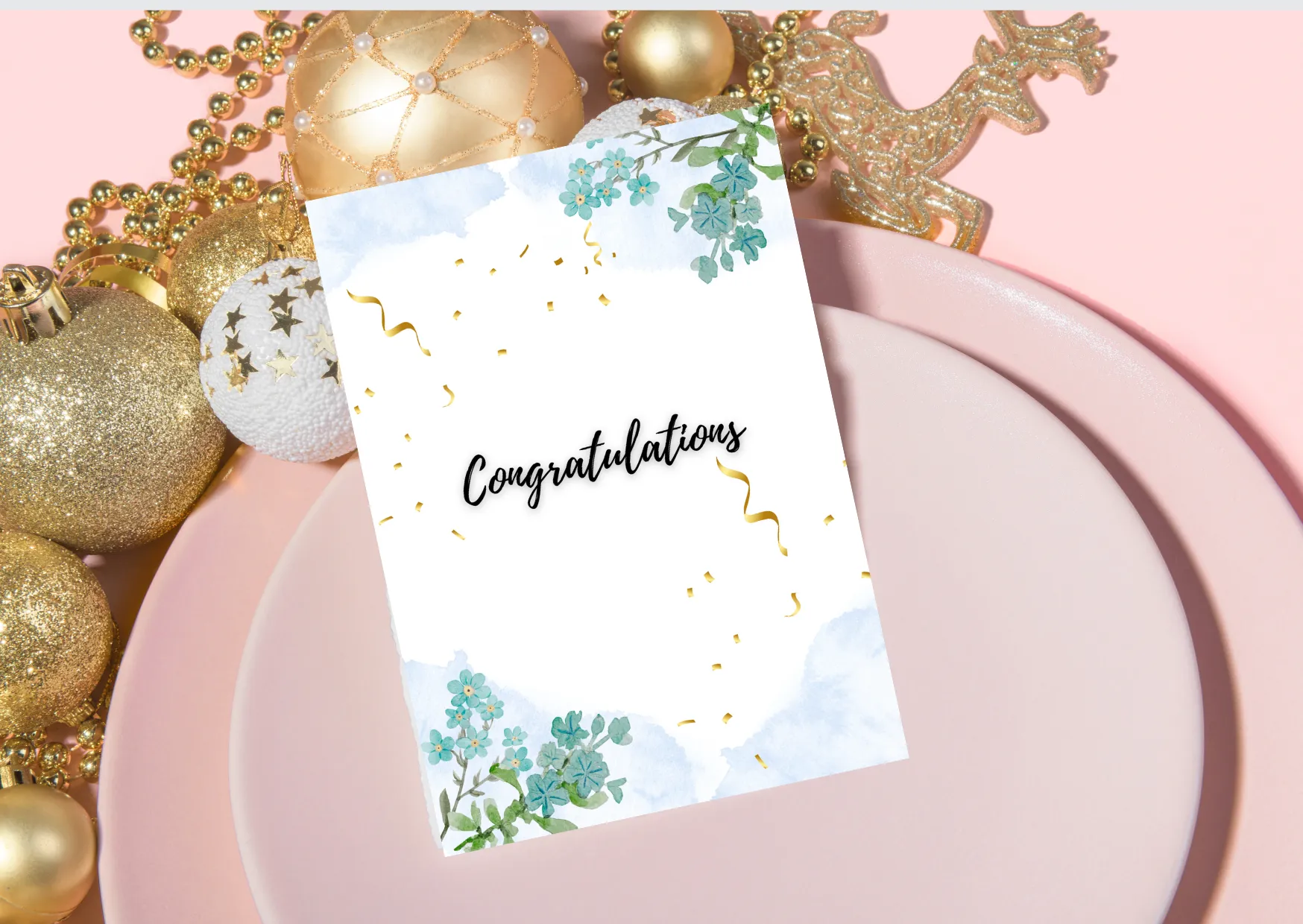 A versatile and elegant congratulations card designed for all your festive moments, from graduations and promotions to new babies and achievements. This design blends classic charm with a celebratory feel, ready for any joyous occasion.
